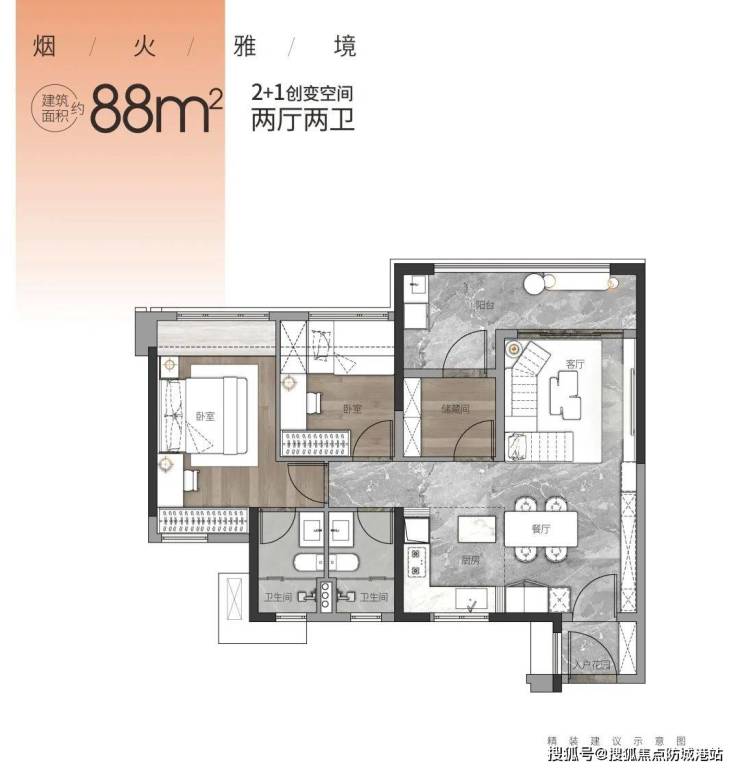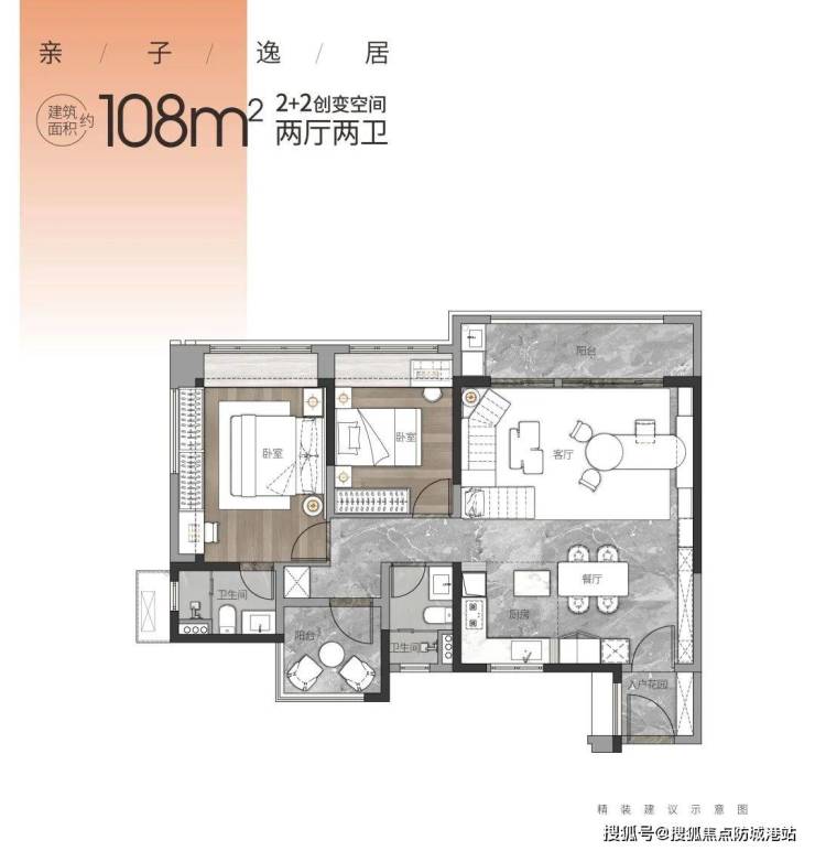 108㎡2+2创变空间2厅2卫,精致主义者的家
