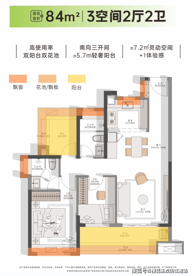 越秀是最懂刚需们心思的,面积该偷尽偷,把使用率打满。户型和功能,能怎么满足就都去满足,76方做三房两卫,深得刚需们的心。