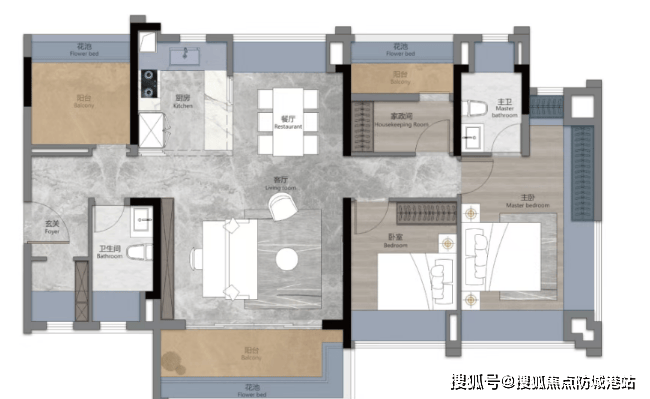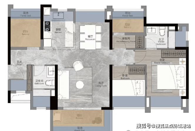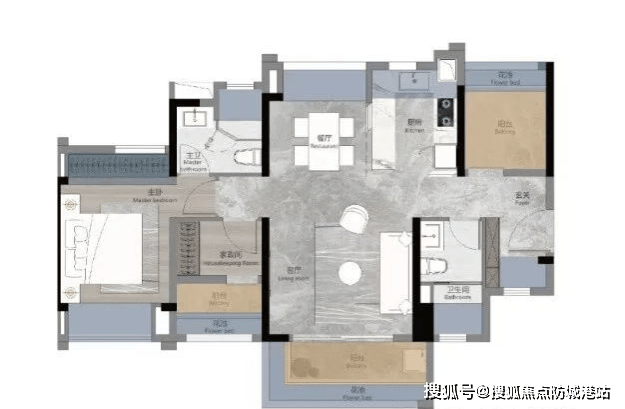 约119㎡四房两厅两卫:南北对流设计,空气流通良好;全景主卧套房,提供私密尊贵的居住体验。