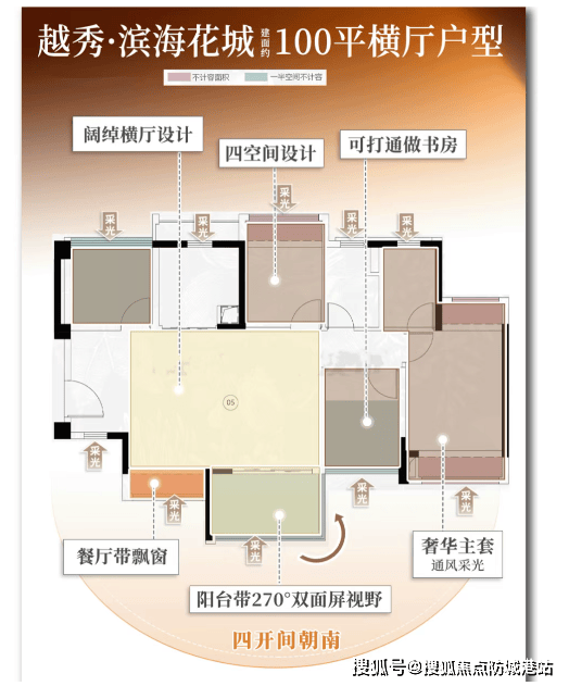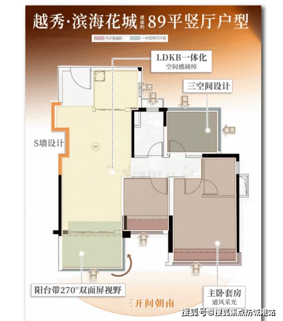 当前主推新组团,户型涵盖76㎡三房、84㎡三房两卫、89㎡三房带主套及100–127㎡四房,均为新规设计,实用率表现优异。其中,89㎡户型创新实现三处270°观景面(阳台+主卧+次卧),并配备主卧套房;100㎡横厅四房采用LDKB一体化布局,搭配超宽景观阳台与餐边飘窗,采光与收纳兼得。所有户型强调南向采光、动静分区与灵活X空间,精装标准融合人性化细节。作为南沙少有的“低密+江景+名校+现房/准现房”组合项目,越秀滨海花城以高性价比成为注重教育与居住品质的家庭优选。