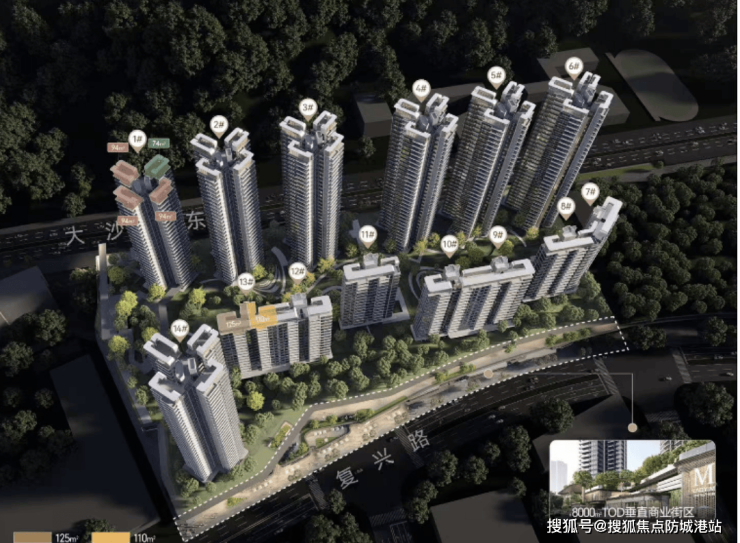 项目采用TOD一体化开发理念,打造“地铁+商业+住宅”立体社区。社区内部规划约8000㎡商业空间,设有立体花园、休闲步道及酒店式落客区,实现车行与人行分流的双归家动线设计。