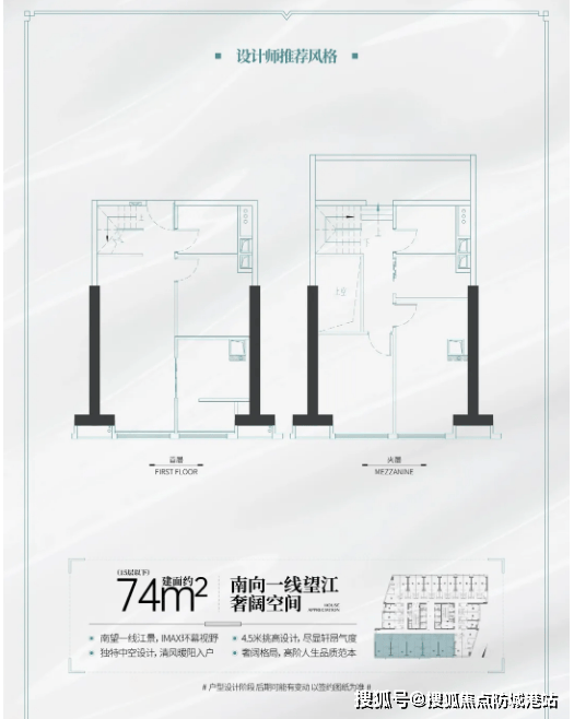 #### 户型一:建面约74㎡南向一线望江LOFT(可明火)