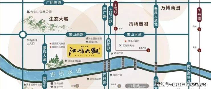 位于广州番禺市桥主城区禺山大道南侧,广州地铁3号线市桥站附近;落位大湾区“桥头堡”,也是广州南部CBD的战略要位,北邻万博CBD,西侧广州南站商务圈,南邻南沙经济发展区,东侧接驳东莞、深圳;定位打造成为粤港澳大湾区门户枢纽和创新动力源、广佛同城示范区、宜居宜业宜游的幸福美丽城区,凭借三中心与两轴发展利好,已成为粤港澳大湾区中轴发展极。