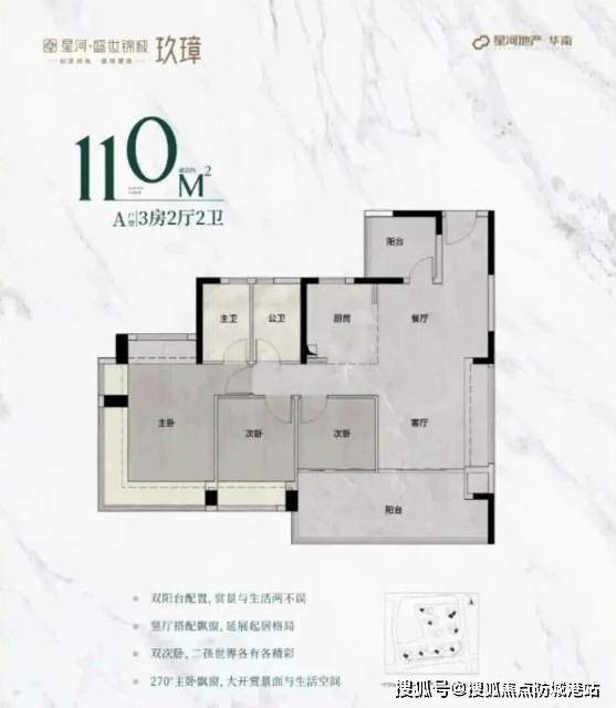 (二)品质刚需户型:110㎡三房两卫,总价约384万