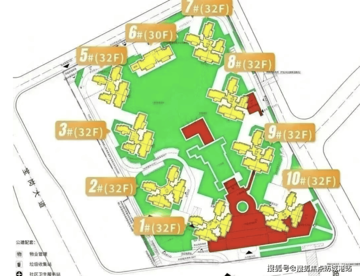 2. 2栋、3栋、5栋、7栋、8栋、9栋:2梯5户,32层高,位置更靠小区内部,离马路稍远,噪音影响较小,户型以改善型为主,适合改善置换客户。