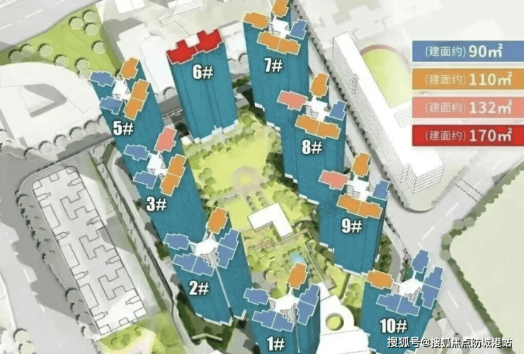 3. 6栋:板楼设计,2梯2户,30层高,是小区的楼王,主打160-170平左右的大户型,纯改善定位,南北对流,视野开阔,直面小区中央园林,居住舒适度最高,适合预算充足的改善客户。
