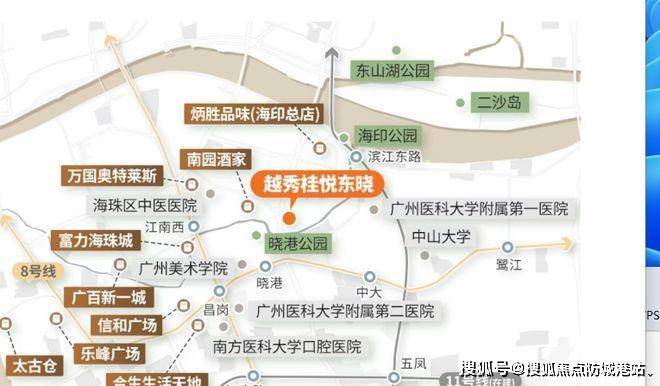 商业配套成熟,周边商圈云集,居民可轻松享受吃喝玩乐一站式服务。医疗配套完善,项目周边广州医科大学附属第二医院昌岗院区等综合医院,以及广东省口腔医院、广东省第一荣军优抚医院等专科医院,为居民提供全面且专业的医疗服务。生态环境优越,项目西南侧直面约 17 万平的晓港公园,将公园景观融入社区生活,高层视野开阔,无遮挡,部分高层视距超 500 米,可眺望江南西商圈夜景。同时,东侧望百年学府中大和广州塔,北望珠江新城天际线和二沙岛,自然与城市景观相得益彰。
