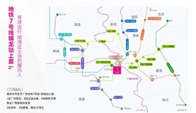 项目是广州地铁 7 号线锦龙站的上盖物业,下楼即达 C 出口,4 站可抵达广州南站,5 站直达琶洲,地铁出行高效便捷,为公寓的租赁与民宿经营提供强大交通支撑。