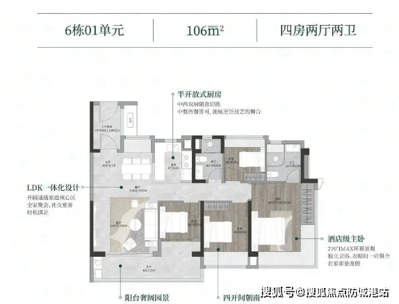 项目包括6栋商品房和5栋安置房(其中1栋为公租房),商品房层高在26至33层之间,容积率为约3.42。主要户型面积从82至141平方米不等,主打全南向设计,旨在提供更佳的采光效果与居住体验。