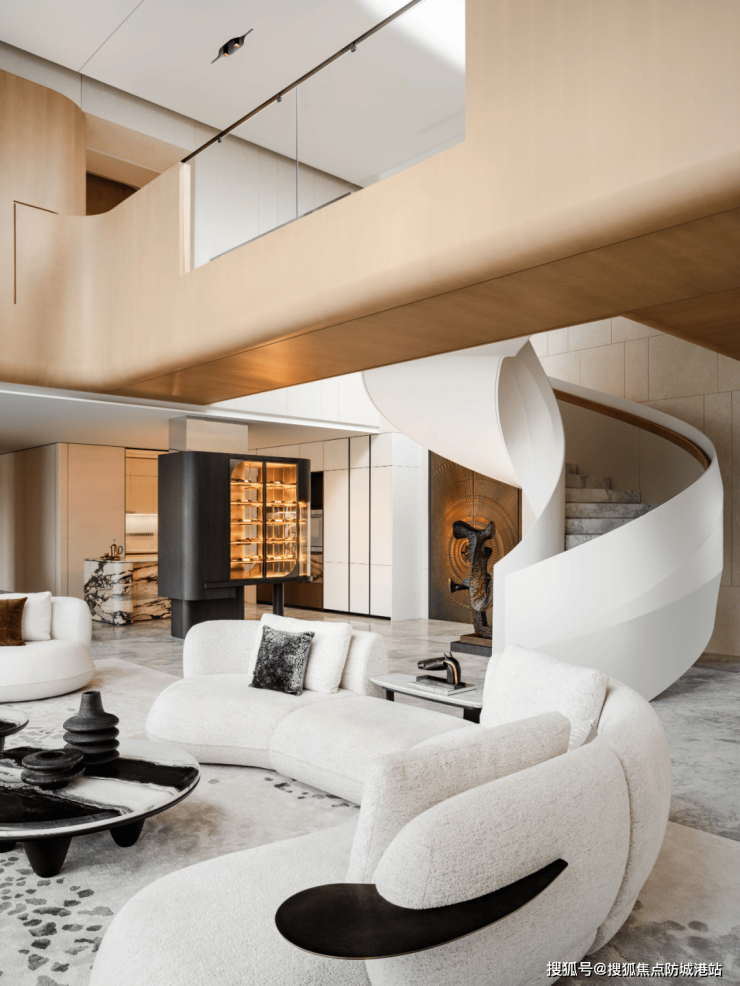 挑空设计:约6.8米的挑空餐客厅,让人瞬间感受到“大气”二字。阳光透过落地窗洒进来,光影在地面上跳跃,营造出温馨而高雅的氛围。