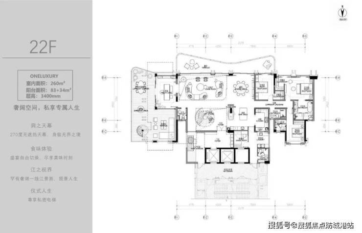 功能配置:中西双厨、四套房设计、约3.4米层高,细节之处尽显奢华。