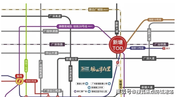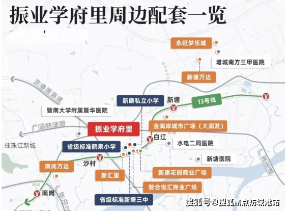 振业学府里位于增城新塘核心板块,紧邻地铁 13 号线沙村站与白江站,直线距离约 1.5 公里,可一站抵达黄埔、七站直达天河,往东一站还能接入新塘 TOD 枢纽,快速换乘高铁、城轨通达大湾区。自驾出行同样便利,通过广园快速路等主干道,能高效连接天河、黄埔等区域,满足日常通勤需求。项目周边 600 米内有新康小学、鹤泉小学、新塘三中等学校,1 公里内汇聚多座商业广场,生活配套触手可及。