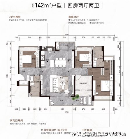涛汇鎏金湾瑞府继承了涛汇集团多年来的高端住宅开发经验,产品设计上兼具美学与实用性。项目引入国际星级酒店设计理念,打造尊崇的归家仪式感。从港湾式迎宾入口到全楼50米宽的楼间距,每一处细节都体现了高端生活的追求。特别是在楼盘规划上,项目采用“LDKB+X空间”设计理念,将客厅、餐厅、厨房、阳台等区域一体化布局,创造出灵活多变的空间格局,满足家庭多种生活需求。