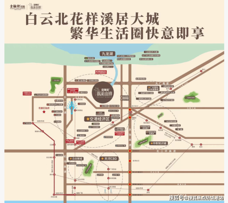 金融街·花溪小镇地理位置优越,距离嘉禾望岗仅一站之遥,通过京港澳高速接驳华南快速可直达珠江新城,全程约40分钟。此外,项目周边还有两条已开通的地铁线和一条正在建设中的城际轨道,使得居民可以方便快捷地到达市中心以及珠三角地区的其他城市。未来,随着机场第二高速的开通,这里的交通优势将更加明显。