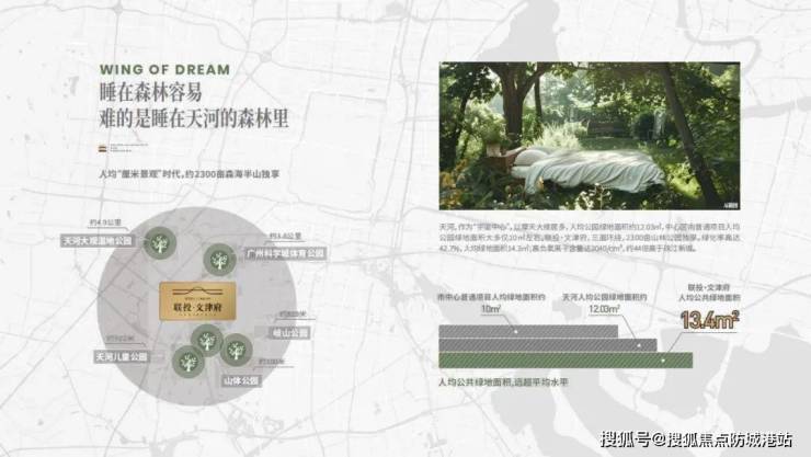三面约2300亩公园环绕,人均绿地面积约13.4㎡,其负氧离子含量高达3040/cm³,是珠江新城的44倍。