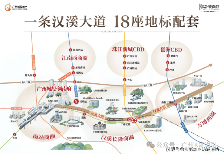 路网交通:项目周边路网密集,汉溪大道、南大干线、广明高速、东新高速等多条主干道环绕,自驾出行十分便捷。从项目出发,自驾5分钟可到达广州南站,10分钟可到达万博商圈,15分钟可到达长隆旅游度假区,30分钟可直达珠江新城、琶洲CBD等核心区域,轻松实现“半小时广州生活圈”。同时,海珠湾隧道已通车,从项目出发,可快速直达海珠区,进一步缩短与核心城区的距离。