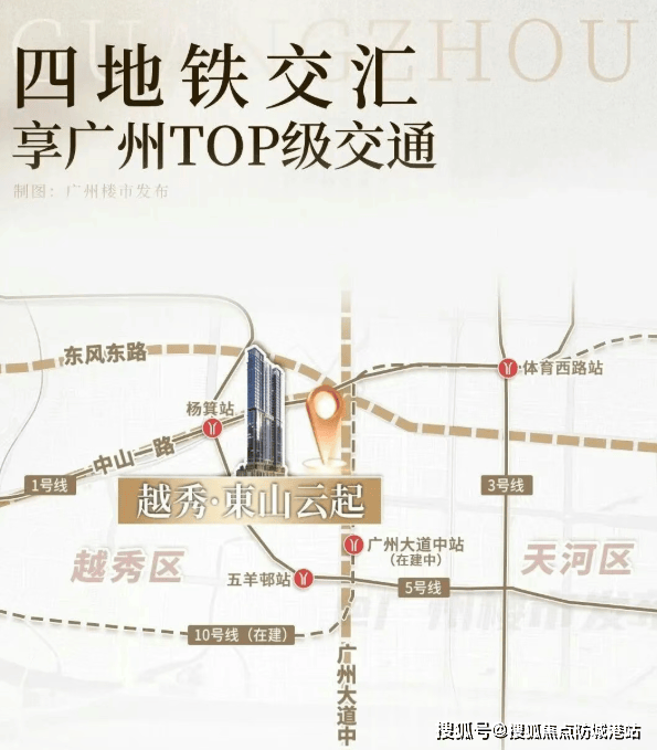 项目交通优势同样突出。直线距离地铁5号线杨箕站约700米,距五羊邨站、体育西路站约800米,三大站点环绕,无缝接驳天河、海珠、荔湾等核心区域。更值得期待的是,地铁10号线预计将于2025年通车,其广州大道中站距项目仅约400-500米,未来将进一步强化区域通达性。