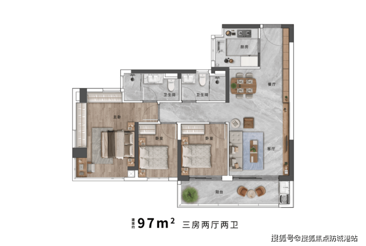 【约97㎡三房两厅两卫 户型鉴赏】