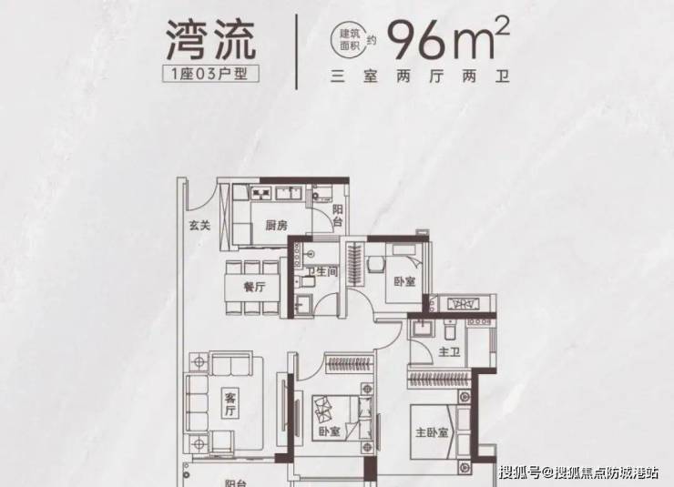 该户型也是南北双阳台,其中1座拥有几乎整个奇槎最好的望江望公园景观,而且主卧还有外飘的转角阳台,比较特别的设计。