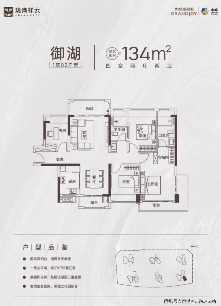 该户型做了南北对流双阳台设计,不过主卧朝北,最低总价约160万起。