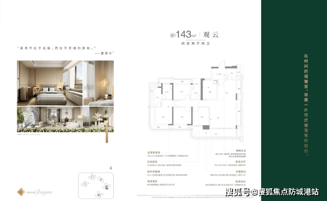 143㎡ 四房两卫:双面宽瞰景阳台,三卧室南向瞰山,LDKB客餐厨阳台一体。