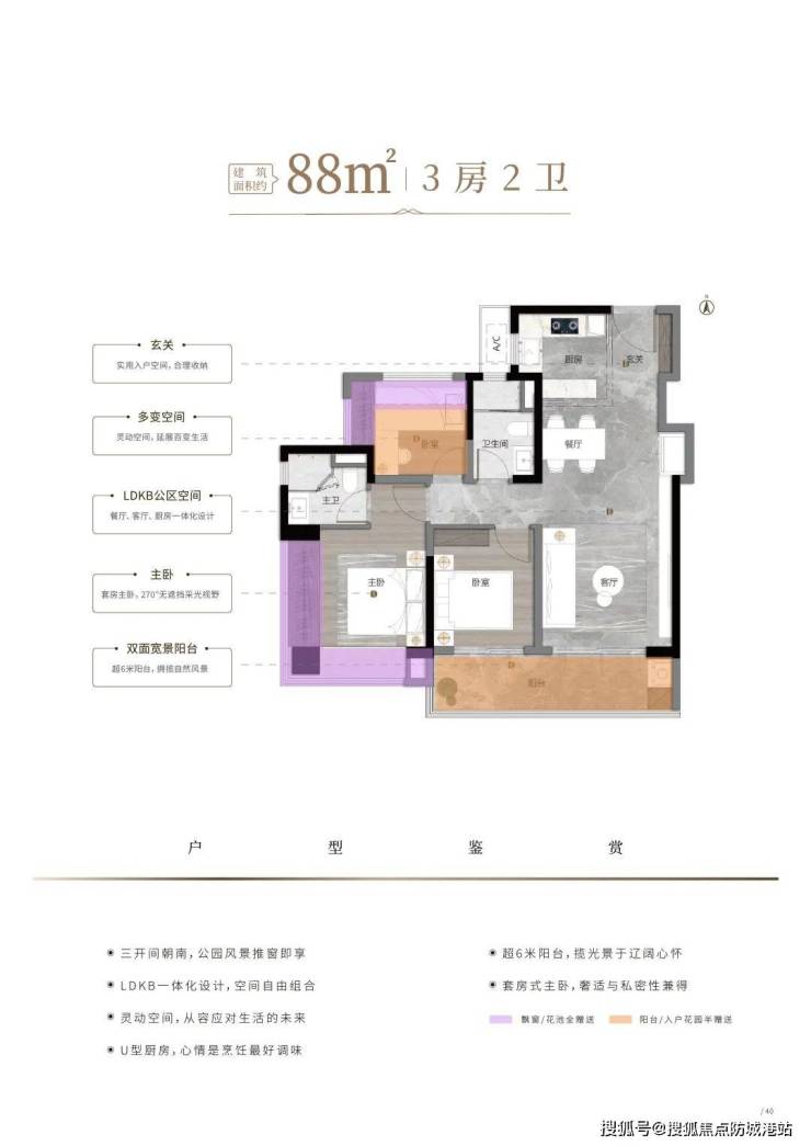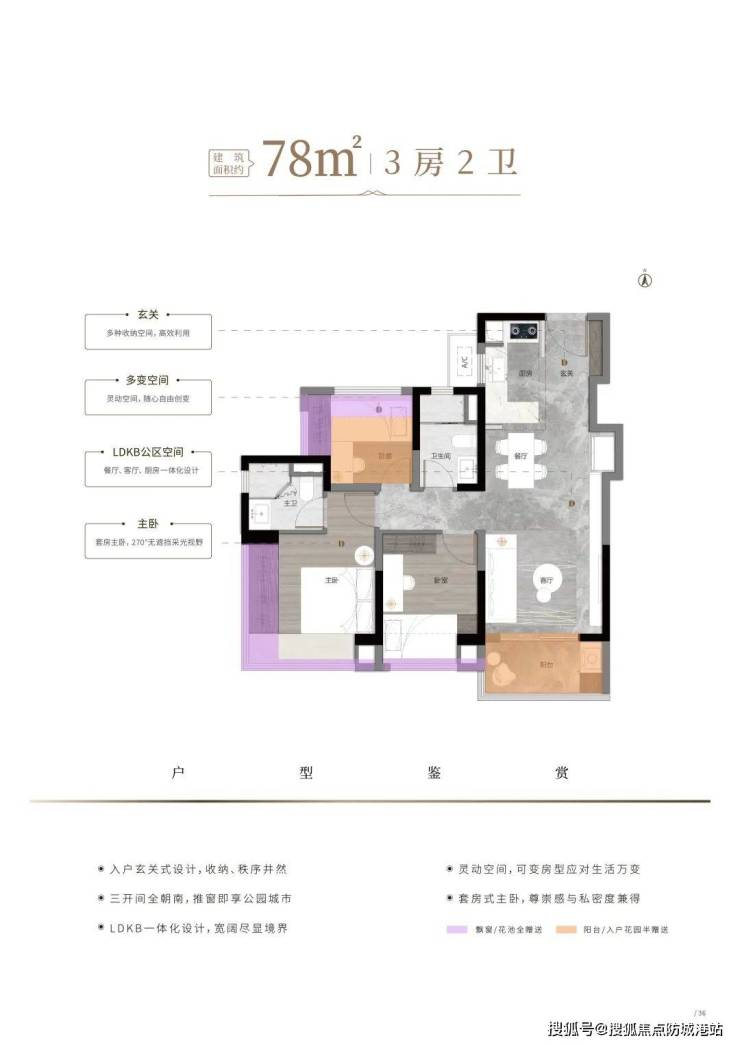 阅山组团共规划7栋楼,层高从26至39层不等,总货量大约1300余套。户型设计上,提供了建面约76/87/105/116平方米的三至五房选择。其中,76平方米起即可拥有三房两卫,105平方米起可做四房两卫,全盘均为全南向布局。产品采用大面宽、长阳台、短进深的设计理念,确保采光通风极佳,部分户型还赠送阳台、飘窗、花池,使得使用率超过100%。