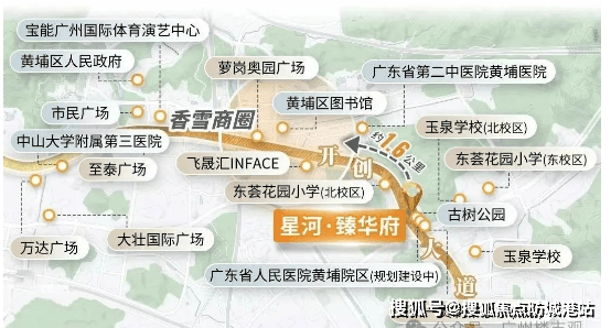 生活配套设施方面,星河臻华府自带约1.05万平方米的底商,同时2公里内覆盖了香雪商圈、萝岗万达、奥园广场等多个大型商业综合体,满足居民日常购物需求。医疗资源方面,项目毗邻广东省人民医院黄埔院区(建设中),以及现有的广东省第二中医院黄埔医院,为居民健康提供有力支持。
