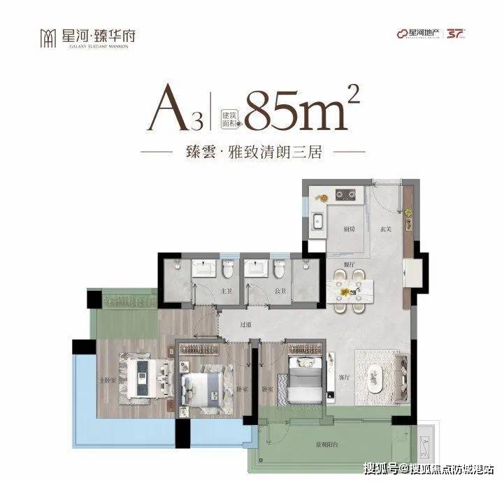 项目提供的户型面积段从85平方米到125平方米不等,包括三房两厅两卫和四房双主套等多种选择。特别是85平方米的三房两厅两卫设计,功能齐全,适合首次置业者;而125平方米的四房双主套则满足了改善型购房者的需求。所有户型均为全南向设计,确保了充足的自然光线和良好的通风效果。85m²三房两卫