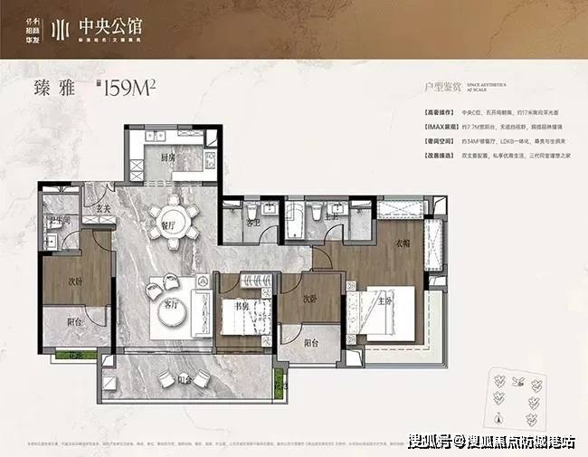 159㎡四房两厅三卫:总价约680万,双主卧设计,270°采光,适合高端改善客群。