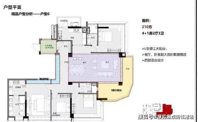 高区 208㎡大平层四房户型尽显奢华大气。两梯两户的设计保证了业主的私密性与尊贵感,电梯直接入户,营造出专属的归家体验。客厅空间极为宽敞,拥有超高的挑高,搭配大面积的落地窗,将江景与城市景观毫无保留地展现眼前,仿佛一幅巨型画卷。四间卧室均为套房设计,每个卧室都配备独立卫生间和衣帽间,为家庭成员提供了极致的舒适与私密空间。开放式的书房或多功能室,可根据业主需求灵活打造,满足工作、娱乐等多种生活场景。餐厅可容纳大型餐桌,适合举办家庭聚会或宴请宾客。整体户型空间尺度开阔,装修精致,是追求高品质生活的改善型客户的理想之选。