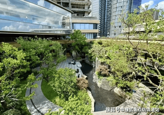 会所内引入“林泉、瀑布、溪流、花木”等元素,营造出“外得江湖、内得山水”的东方意境。园区整体遵循传统造园手法——营山置水、建廊种树、以小见大、造廊架桥、堆山引水,结合建筑层层退台的形态,形成垂直维度上的山水画卷。业主步入其中,仿佛置身于都市中的隐逸桃源。