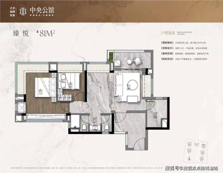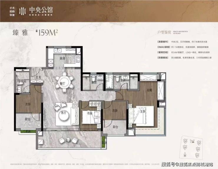 户型多样且各有特点。81㎡户型得房率 105%,主卧南北对流;保利招商华发中央公馆销售中心:400-990-8525转接55589㎡户型得房率 103%,公共空间较为宽敞;92㎡户型得房率 95%,有入户花园;116㎡户型得房率 98%,有入户花园和长阳台;159㎡户型得房率 95%,双主套设计且五开间朝南。价格方面文中未具体提及。❶81m² 西北向 (得房率105%)