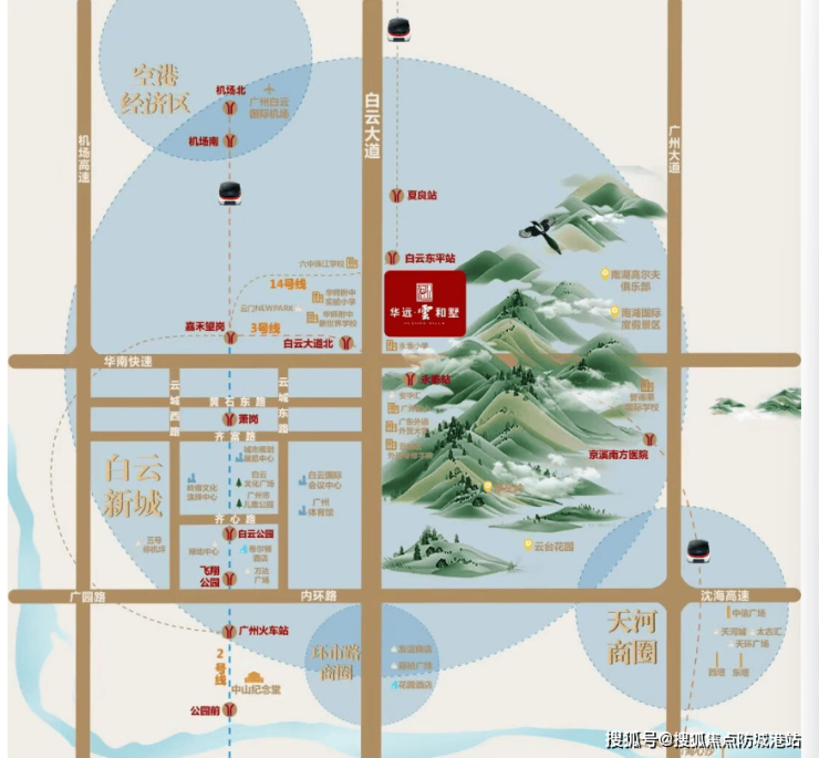 未来利好方面,华远雲和墅受益于白云新城的快速发展。随着广州新CBD地位的逐步确立,白云区总部经济不断聚集,中航国际、华南国际、无限极、韩后和娇兰佳人等知名企业总部相继进驻,土地价值将持续上涨,豪宅项目也将不断涌现。同时,伴随白云大道北的改造升级,地铁14号线的开通运营,项目周边的交通条件将进一步改善,完全可实现半小时交通生活圈。届时,10分钟可畅达白云CBD,20分钟可达机场,20-30分钟通达天河及越秀核心商圈,极大地提升了项目的便利性和吸引力。