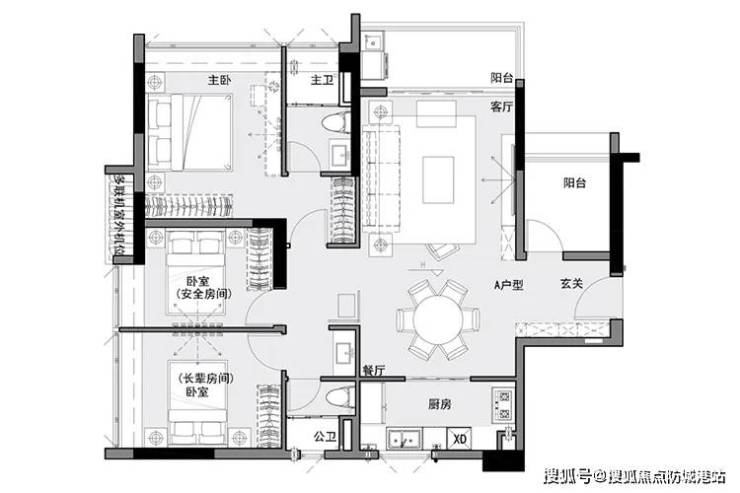 建面约121m²四房两卫:该户型以3.15米的奢阔层高和4米开间的客餐厅为特色,空间开阔明亮,动静分区合理。