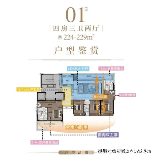 224-229㎡四房户型:专为改善型家庭打造,空间阔绰大气,四房两厅两卫的布局能完美匹配多人口家庭的居住需求;主卧配备独立卫浴、步入式衣帽间,保障主人隐私的同时,彰显尊贵品质;客餐厅一体化设计,连接超大景观阳台,南向望江视野开阔,推窗即可欣赏江景与园林双重美景;同样配备双阳台与800mm飘窗,加上3.3米层高,即便安装中央空调或后期加装地暖,纵向空间依旧绰绰有余,让室内气派感与舒适度拉满。