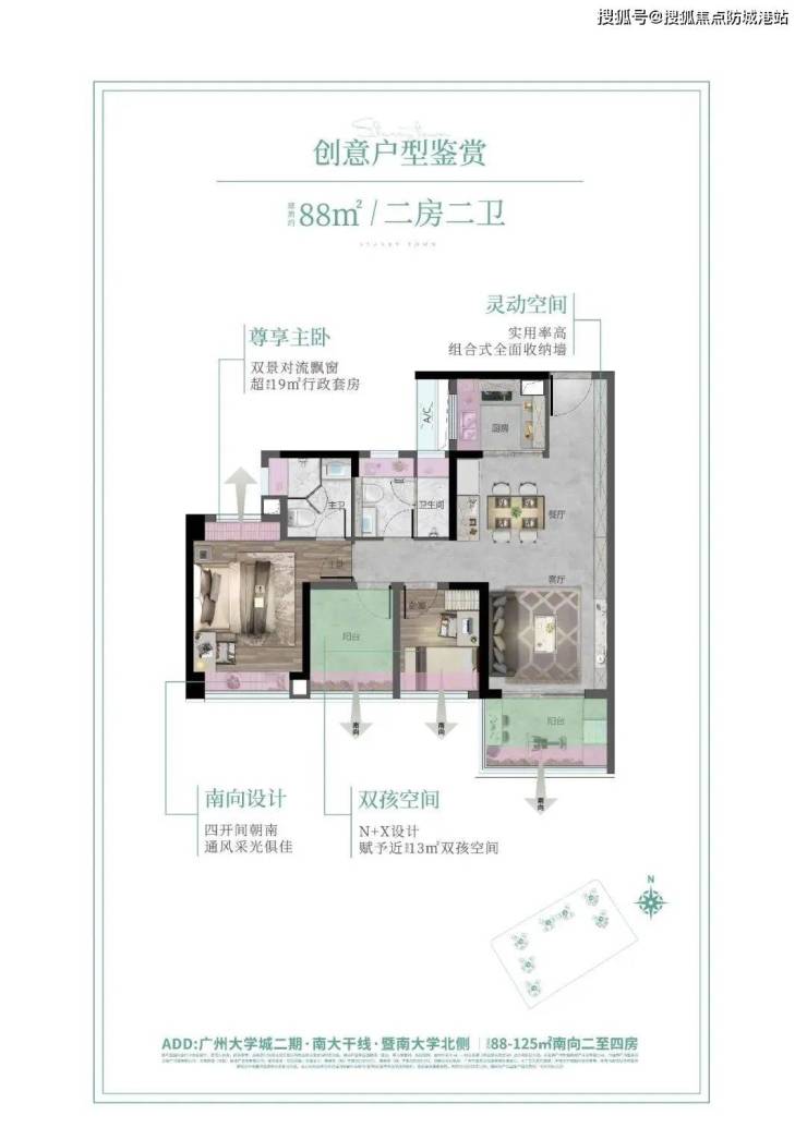 越秀大学星汇城的88平方米户型为2+1房2卫,售价在350万至380万之间。