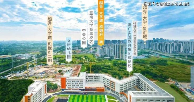 在教育方面,越秀大学星汇城配套的学校是由越秀集团引进的广大附中番禺实验学校,位于大学城和樾府地块。此外,项目距离暨南大学番禺校区、华南理工大学国际校区也很近,只有一条街的距离。