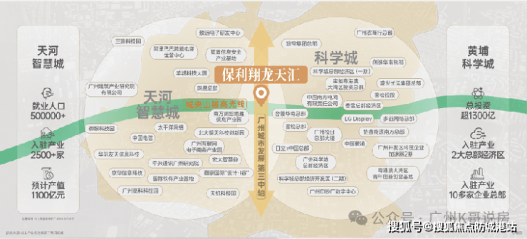 一座城市的房产价值,永远和城市发展轴线、产业布局深度绑定,地段的核心价值,决定了楼盘的自住舒适度与长期保值增值能力。保利翔龙天汇精准落位广州第三发展中轴线 “科技创新轴” 之上,这条城市重点规划的发展主轴,以琶洲商务区为核心支点,向北串联中新广州知识城,向南直达广州大学城,串联起广州南部、中部、北部的核心产业板块,是广州近年重点打造的科创经济核心走廊。