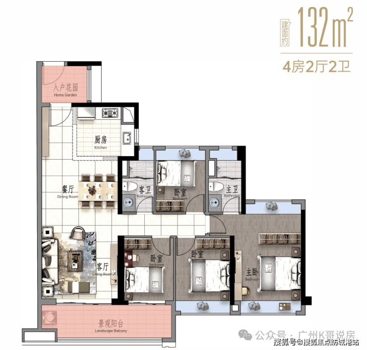 刚需爆款小户型包含建面约 84 平米 2+1 房 1 卫、98 平米三房两卫。其中 84 平米小户型是片区内稀缺低门槛户型,总价友好,适合首次置业的年轻小情侣、单身刚需人群,户型格局方正,无遮挡山景视野,空间利用率高,紧凑不压抑,轻松实现安家广州的梦想。98 平米明星三房为项目热销爆款,三开间朝南布局,超大采光面,搭配约 6.1 米 L 型全景大阳台,南向直面 2.1 万平米中央园林景观,次卧配备 270° 全景飘窗,室内通透明亮,收纳空间充足,完美适配三口之家日常居住。