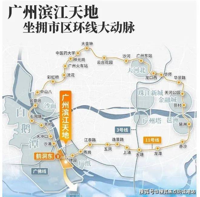 🚇广船·广州滨江天地璇湾位于广州荔湾区白鹅潭经济圈核心,毗邻珠江后航道,坐拥“一江三岸”黄金区位。项目紧邻地铁11号线(在建)与22号线(规划)交汇站,15分钟直达珠江新城,30分钟覆盖大湾区核心城市群。作为广州“西联”战略重点板块,区域规划超200万㎡商业综合体,未来将打造为集总部经济、文化创意、滨水休闲于一体的国际滨江都会区。