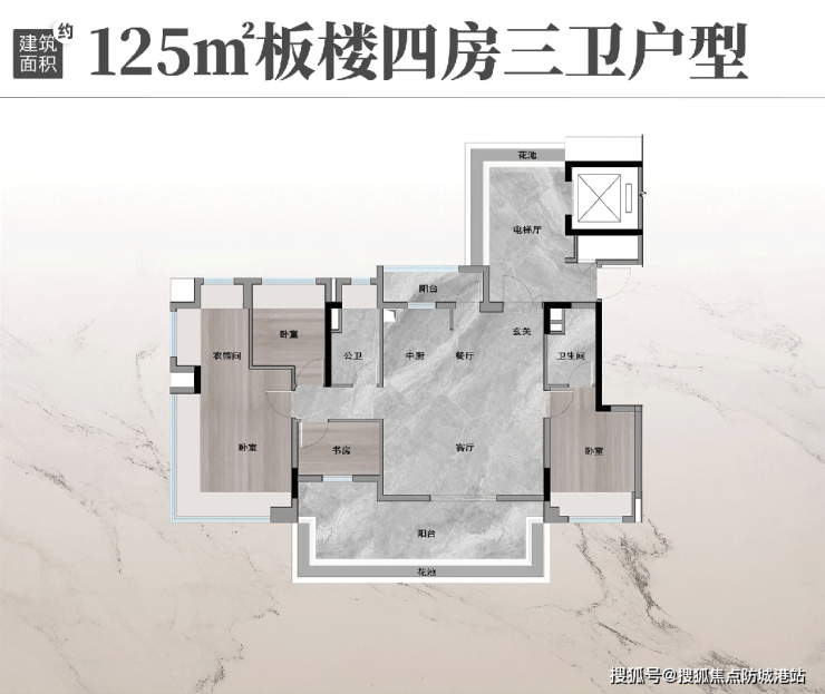 尤其值得关注的是,项目同步推出塔楼与板楼两种产品形态。其中板楼采用“一字排开”布局,南向无遮挡,前后双花园环抱,搭配两梯两户设计,实现真正的低密改善体验。即便是建面约110㎡、125㎡的板楼户型,也能享受到四面宽朝南、南北对流、独梯入户等大平层级配置,甚至125㎡做到双主卧套房——这在老黄埔其他项目中,往往需180㎡以上才能实现。