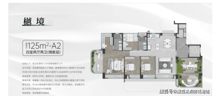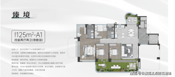 卖点一补充:空中花园加持,空间利用率拉满 每户配备专属空中花园,露台赠送率高达40%,加上飘窗等赠送面积,实现小面积大享受。