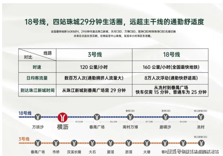卖点三补充:湾区通勤动脉,畅达粤港澳 18号线串联琶洲、万博、明珠湾各大CBD,未来还将延伸至珠海、中山,实现湾区一小时通勤圈。