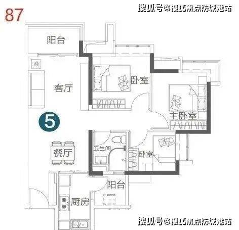 建面约85㎡精致三房:作为入门级置业首选,该户型格局方正,功能分区明确,实现了空间零浪费。经典竖厅设计,连接南向景观阳台,保证了充足的采光与通风。卧室均带飘窗,拓展了室内使用空间,无论是作为新婚夫妇的婚房,还是三口之家的温馨居所,都显得恰到好处。