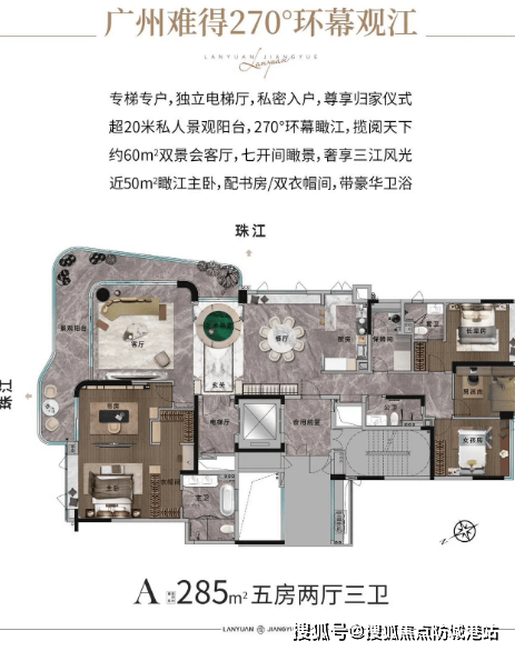 广州兰园江悦作为兰园控股打造的顶藏级滨江豪宅,突破传统豪宅空间设计局限,掀起空间革命,凭借科学的空间规划与超高空间利用率,实现“同等面积多享一间房”的核心优势,彰显顶奢产品的实用性与格调感。项目规划容积率≤2.68,是白鹅潭板块至低密社区,绿地率高达40%,仅规划一栋18层建筑,总户数仅68席,采用专梯专户设计,私密性与尊贵感拉满,彻底摆脱传统豪宅拥挤嘈杂的弊端。项目主打建面约193㎡和285㎡江岸头排艺术奢宅,虽仅两种户型,但空间利用率极高,通过合理的动线规划与空间布局,挖掘每一寸空间价值,相较于同面积段其他豪宅产品,可实现多一间功能空间的拓展。193㎡户型可灵活拓展出休闲书房、儿童游乐区等功能空间,285㎡户型则可打造专属影音室、私人健身房等,既保障了奢阔的居住尺度,又提升了空间的实用性,实现空间利用的最大化,完美匹配塔尖家庭的多元化居住需求。