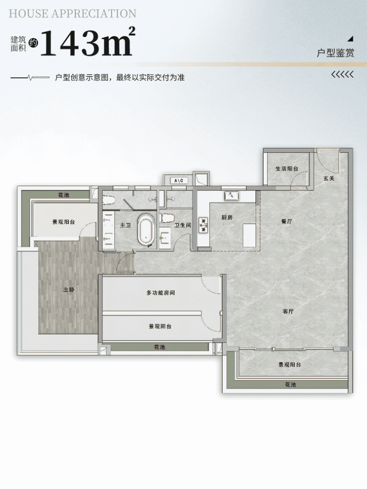 高区建面约143平,一键打开N种生活,约37平豪华主卧套房,更是将改善生活尺度,拉到最满!总价700万起。