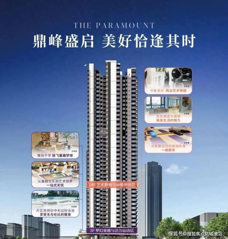 新福港鼎峰的建筑高度为41层,其中包括两个避难层(第14层和第37层),其中第14层被精心打造成了多功能区,包含棋牌室、书吧、运动天地等设施,丰富了业主的生活体验。