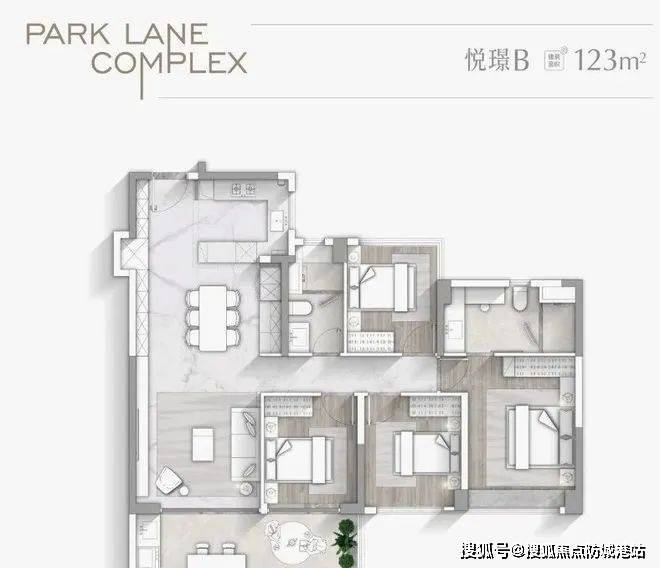 123㎡四房:LDKB一体化设计,配备6.7米双面宽阳台,半开放式中西厨以及主卧套房配置,总价约为680-850万,适合首次换房的家庭。