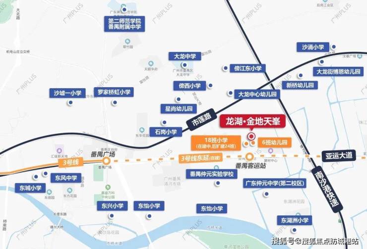 3号线东延段傍江站地铁上盖,可直达珠江新城和白云机场。一站番禺广场,在番禺广场接驳18号线和22号线,另外规划中有17号线。