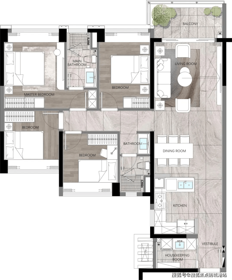 在户型设计上,项目主打129-180㎡四房改善户型,全户型采用南北通透设计,空间利用率高达85%-90%。其中140㎡户型采光面达18米,通风效率优于行业标准30%,客厅连接7.2米宽景阳台,可俯瞰社区园林景观;180㎡江景户型更是做到了四开间朝南,270°环幕观景阳台,直面珠江盛景,将江风与阳光最大限度引入室内。所有户型均配备独立玄关、U型厨房、干湿分离卫生间,满足全龄段家庭的居住需求。